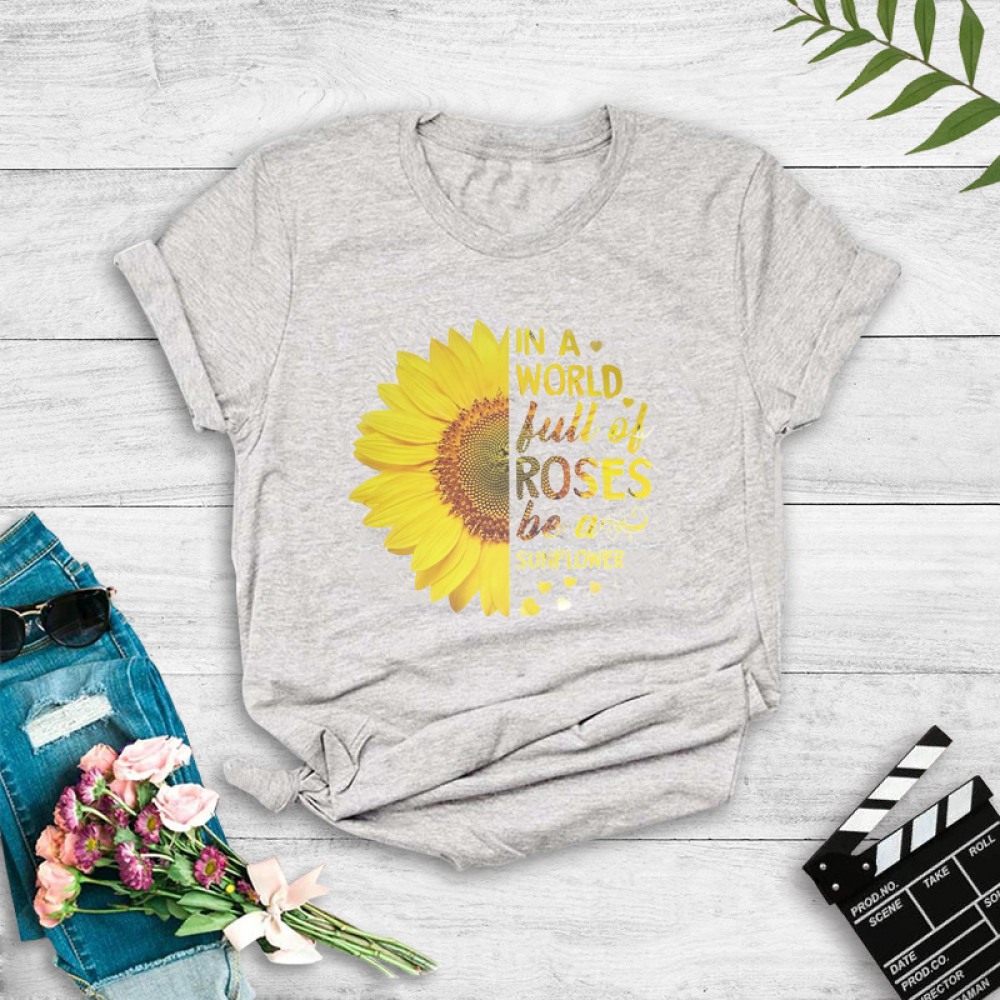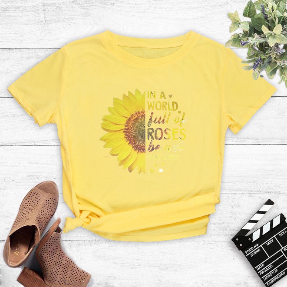 Casual Trendy T-Shirt Women's Plus Size Sun Flower Letter Printing T-Shirt