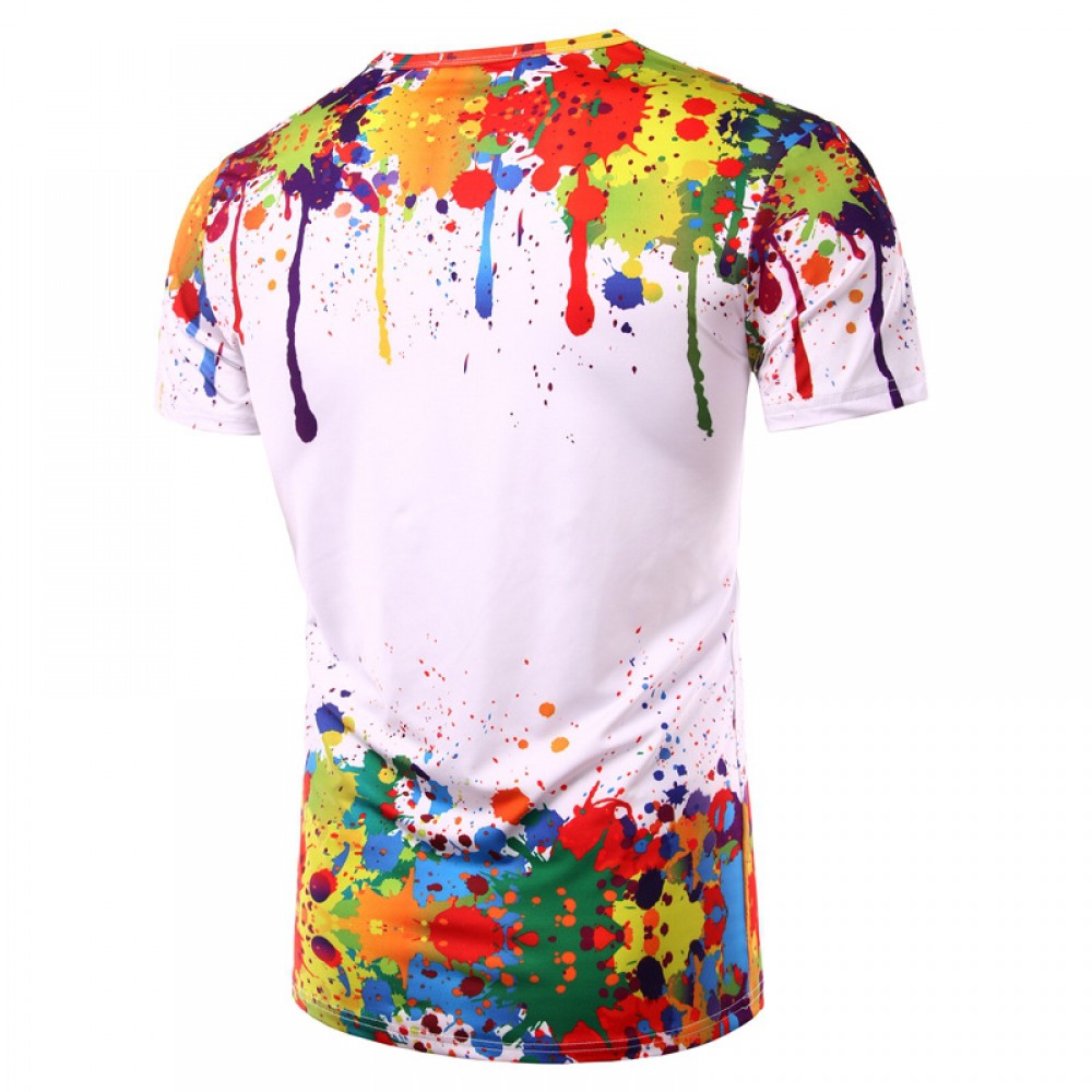 Hot Selling Style Men's Paint Splashing Pattern 3D Printing Round Neck Short Sleeve T-Shirt