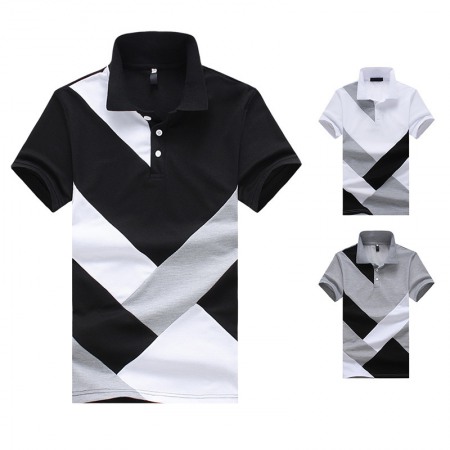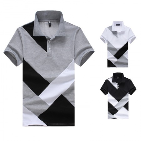 Summer T-Shirt Striped Color Matching Pockets Men's Lapel Short-Sleeved T-Shirt Tops for Men