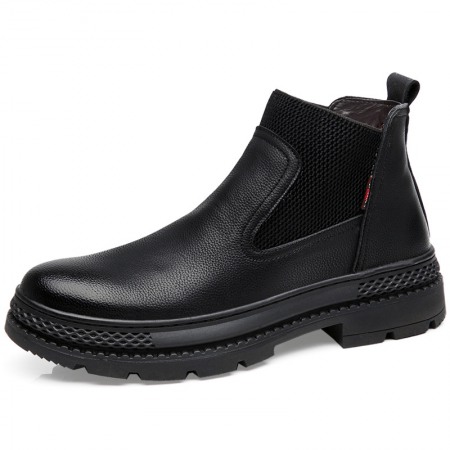 Men's Round Toe British Mens Leather Boots Side Zipper Martin Boots Wear-Resistant Low-Heel Shoes