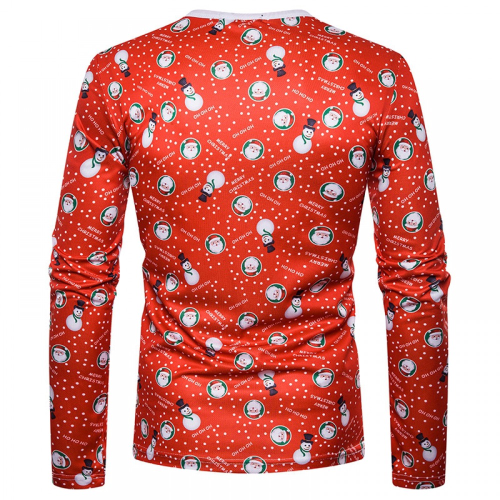 New 3D Personality Fake Two-Piece Printing Fashion Men's Christmas Long-Sleeved T-Shirt