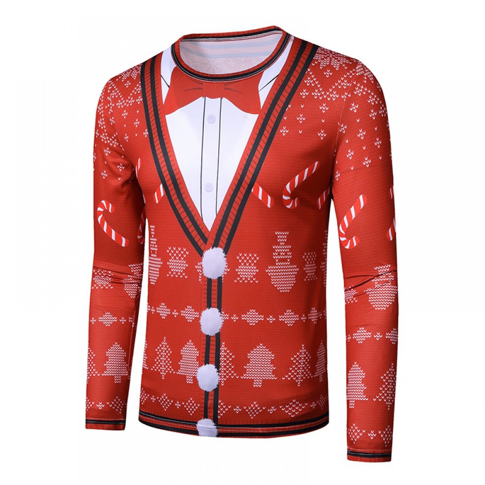 New 3D Personality Fake Two-Piece Printing Fashion Men's Christmas Long-Sleeved T-Shirt