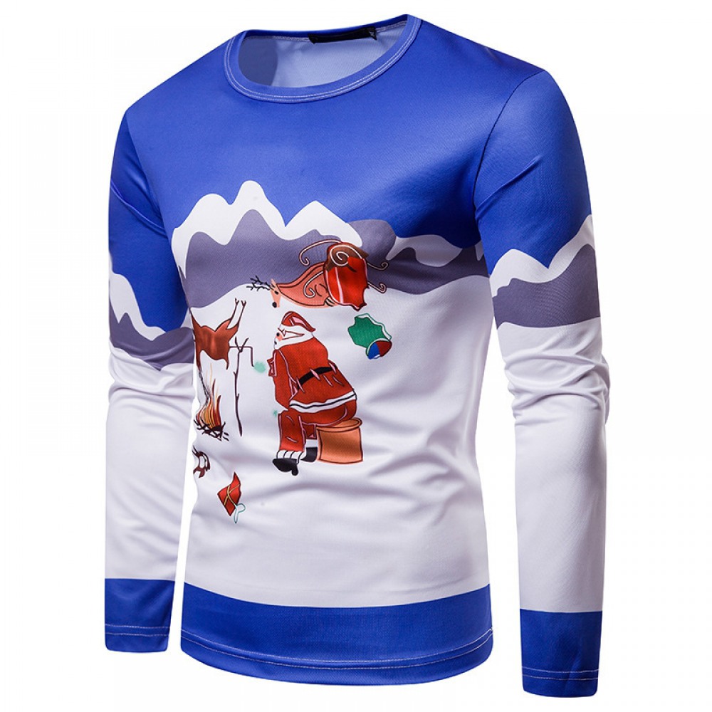 New 3D Personality Printing Fashion Men's Christmas Pattern Long-Sleeved T-Shirt