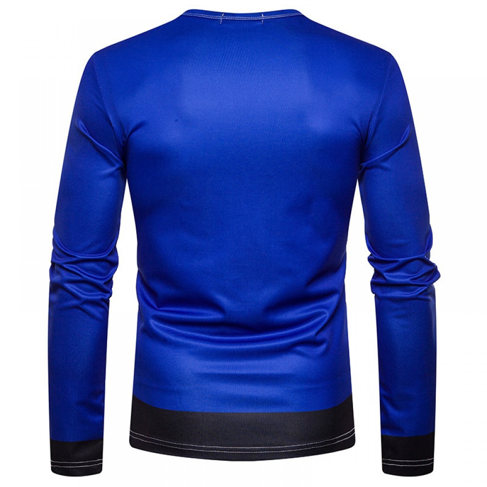 New Men's Large Size 3D Retro Large Pattern Print High Neck Long Sleeve T-Shirt Bottoming Shirt