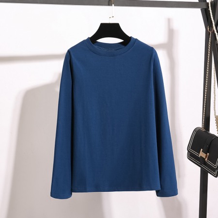 New Style Plus Size Women's Blouse Fat Autumn Wear Sanded Elastic Solid Color All-Match Bottoming Shirt