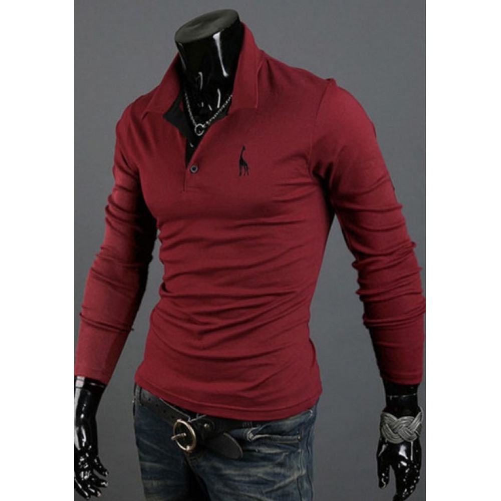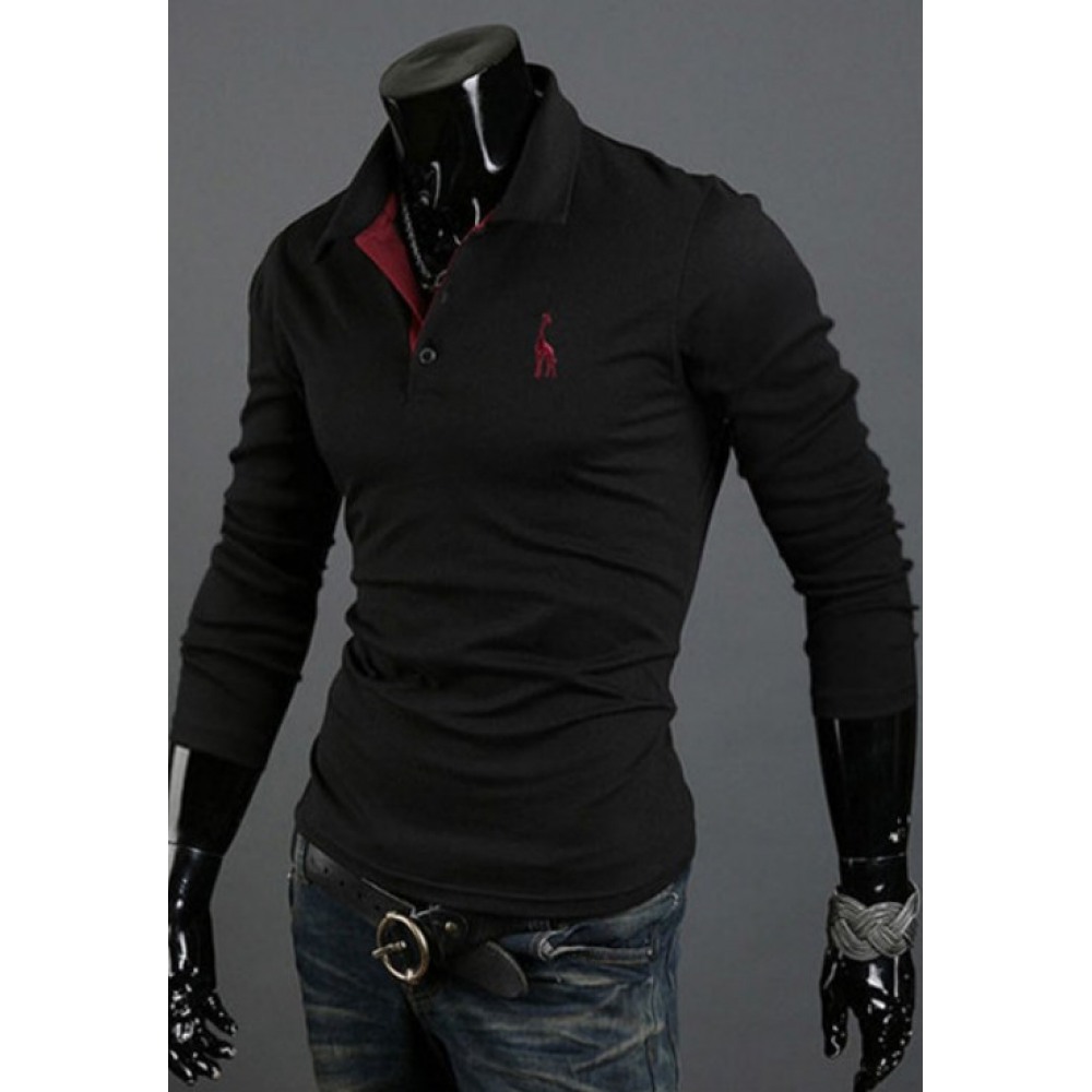 New Summer Casual Men's Cartoon Hooded Long-Sleeved Fashion Urban Self-Cultivation Lapel Everyday Mens T-Shirt