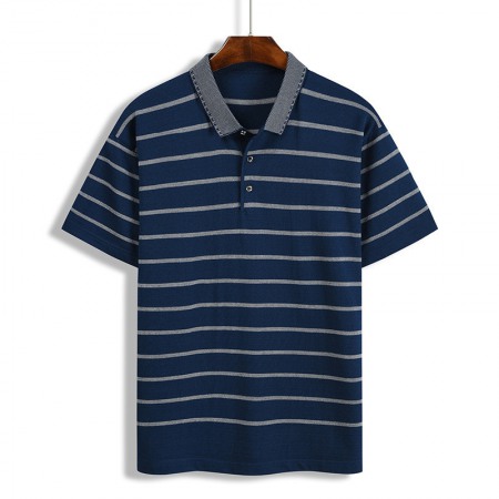New Summer Men's Hooded Striped Lapel T-Shirt Men's Lapel Short Sleeve