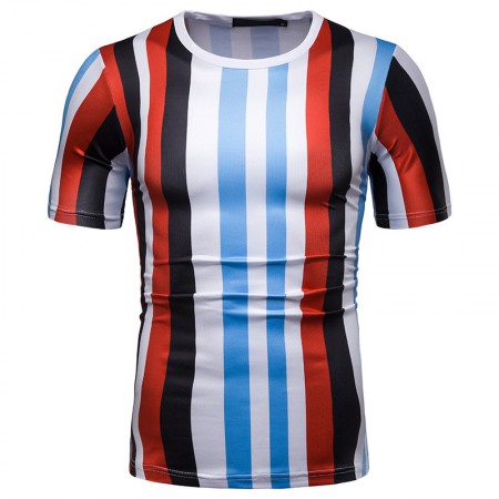 New Summer Men's Short-Sleeved T-Shirt Mens Contrast Striped Slim Casual T-Shirt