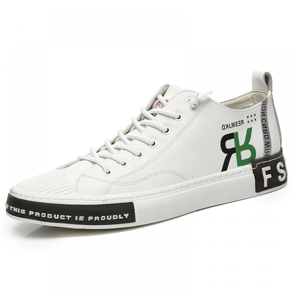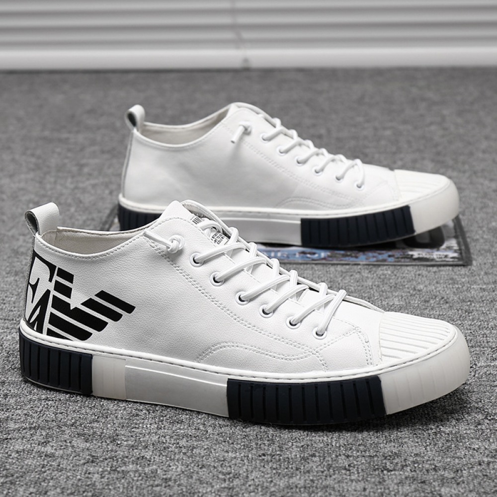 Men's Leather Board Shoes Trendy White Casual Shoes