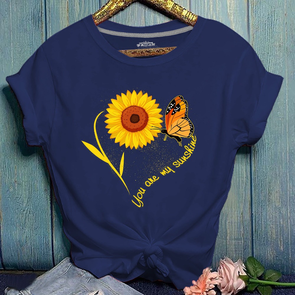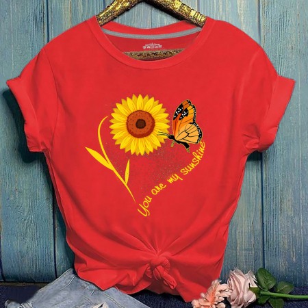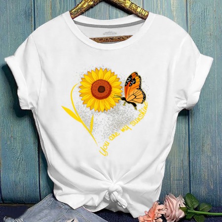 Summer New Hot Sun Flower Print Butterfly Plus Size Short-Sleeved T-Shirt